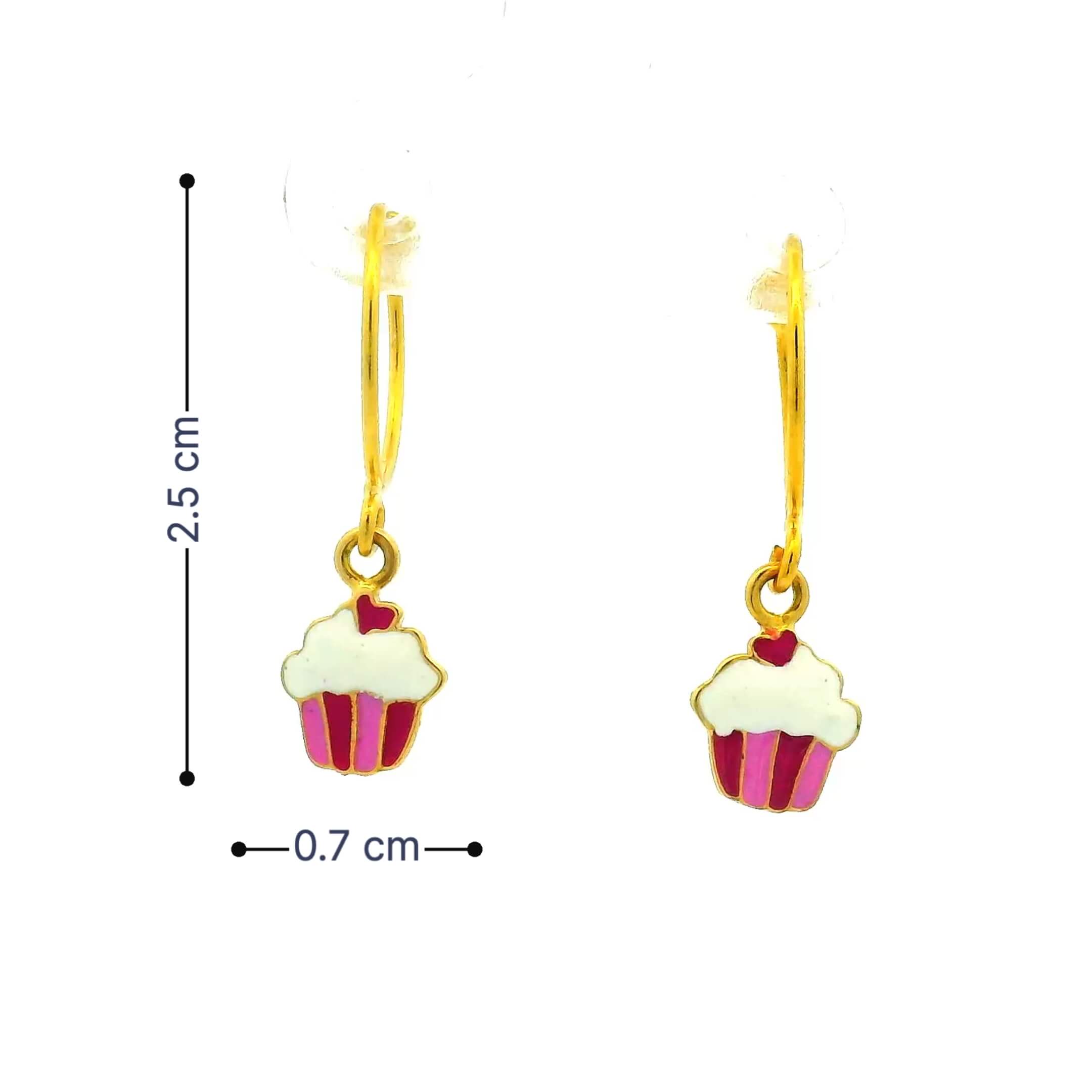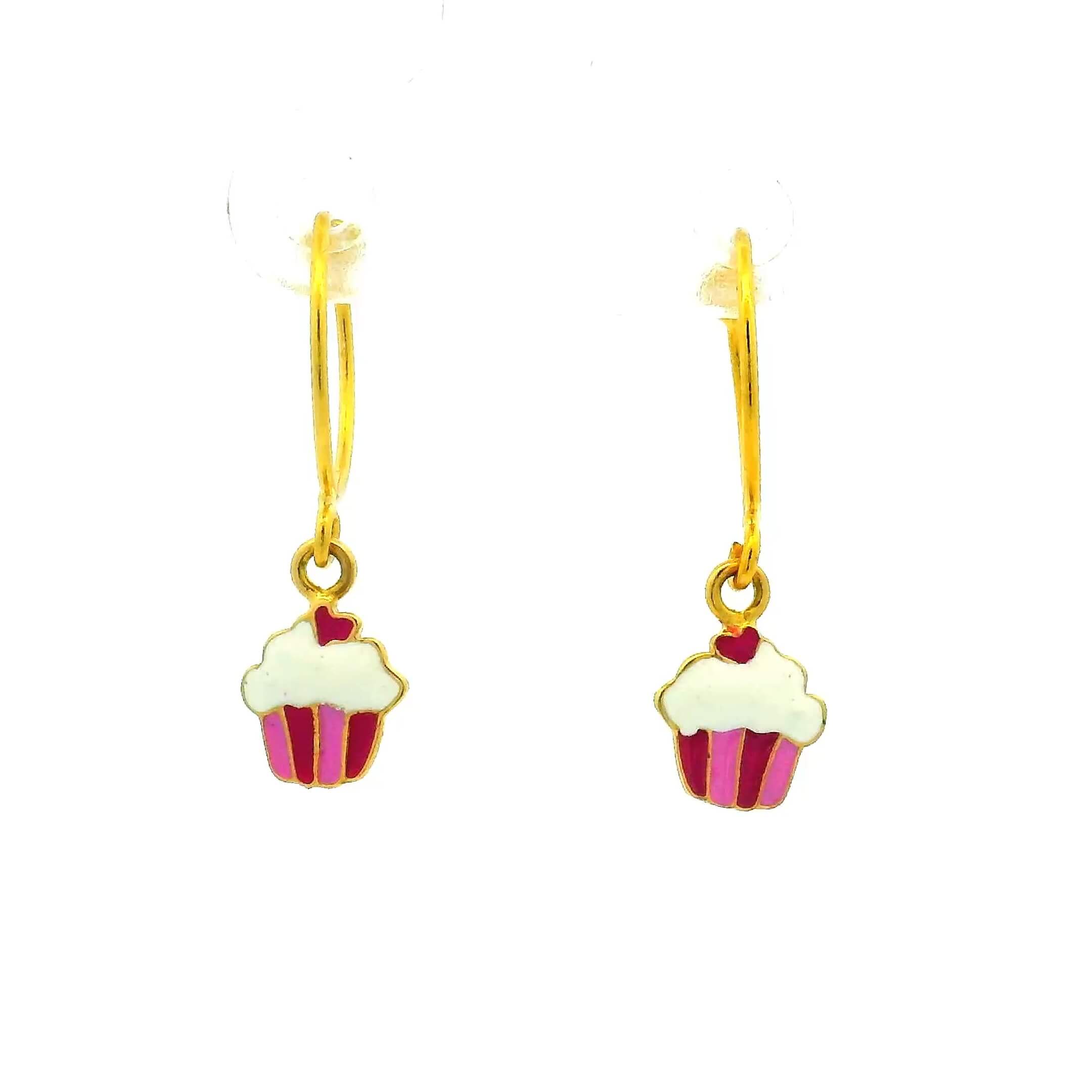 Charming Cupcakes 18K Gold Earrings for Kids
