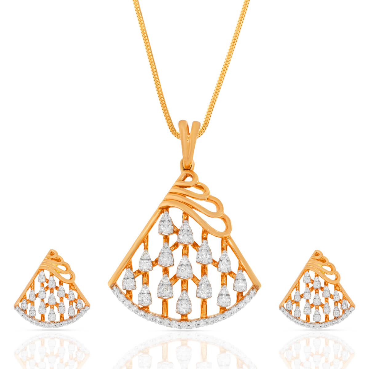 Gentle Trigonal Shimmer Diamond Pendant Set