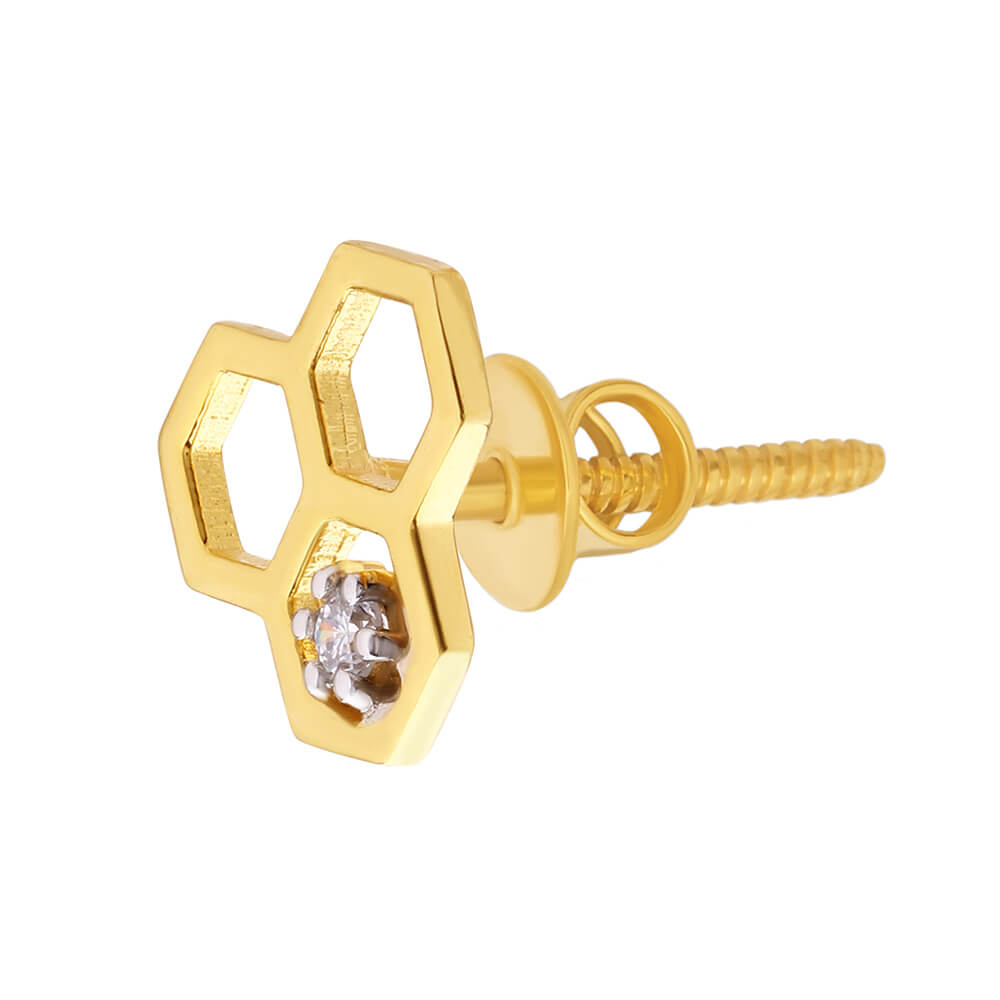 Petite Honey Comb Charm Gold Studs 18K