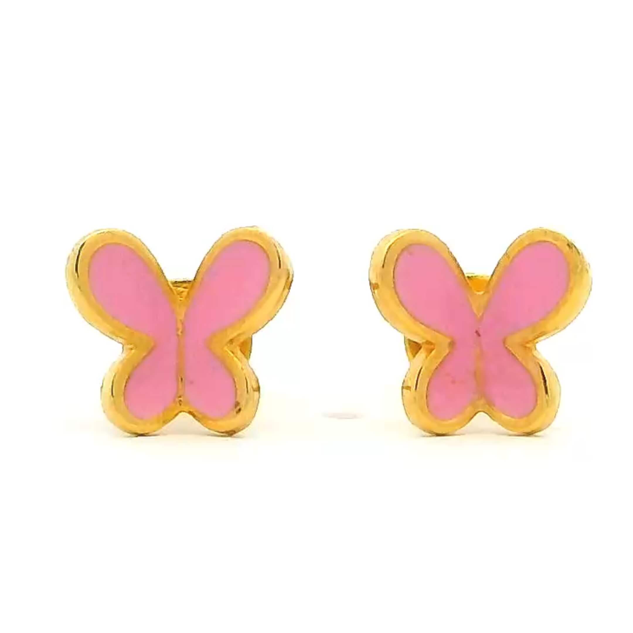 Pink Flutter 18K Gold Earrings for Kids