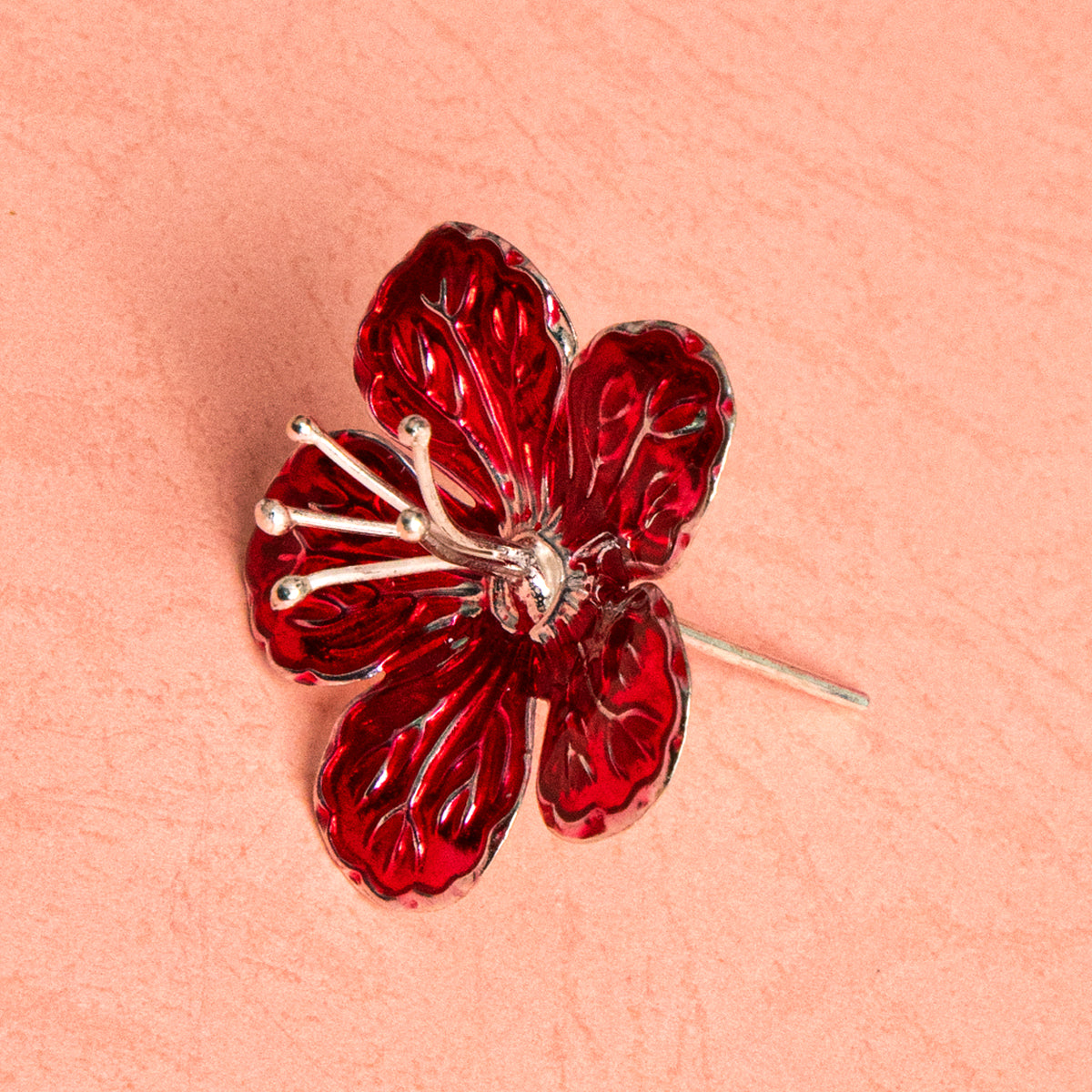 This silver jaswand flower reflects crimson elegance, adding vibrant devotional beauty to pooja dรฉcor and deity offerings.