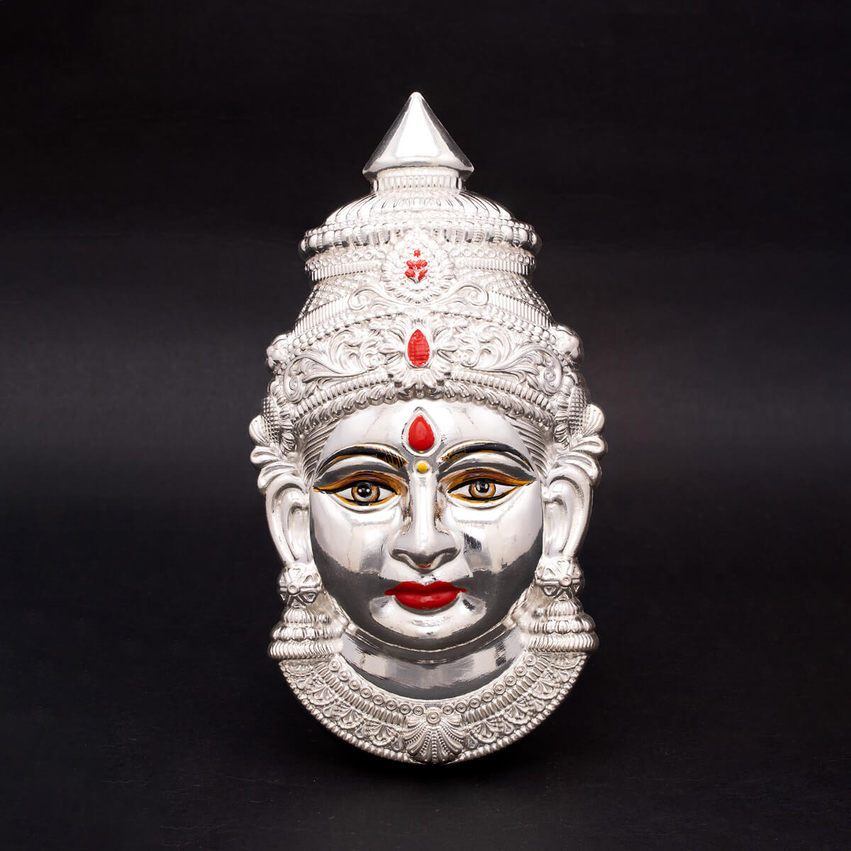 This silver Laxmi idol embodies compassionate elegance and divine grace. Designed for worship, it adds calm devotion and prosperity to sacred spaces.