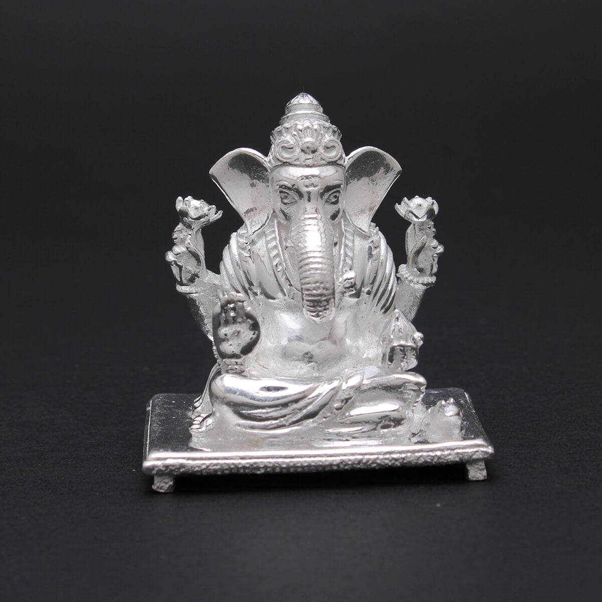 Crafted with holy grace, this silver Lord Ganesha idol enhances devotion. Its sacred presence supports spiritual practices and brings blessings to your home.